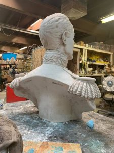 Custom Made for private client completed in our signature white bonded marble with a light brush of “old world” staining technique.